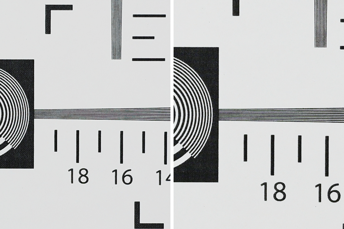 解像度チャートをEOS R6・EOS R6 Mark IIIで撮ったもの、2枚目は中心部分の等倍。