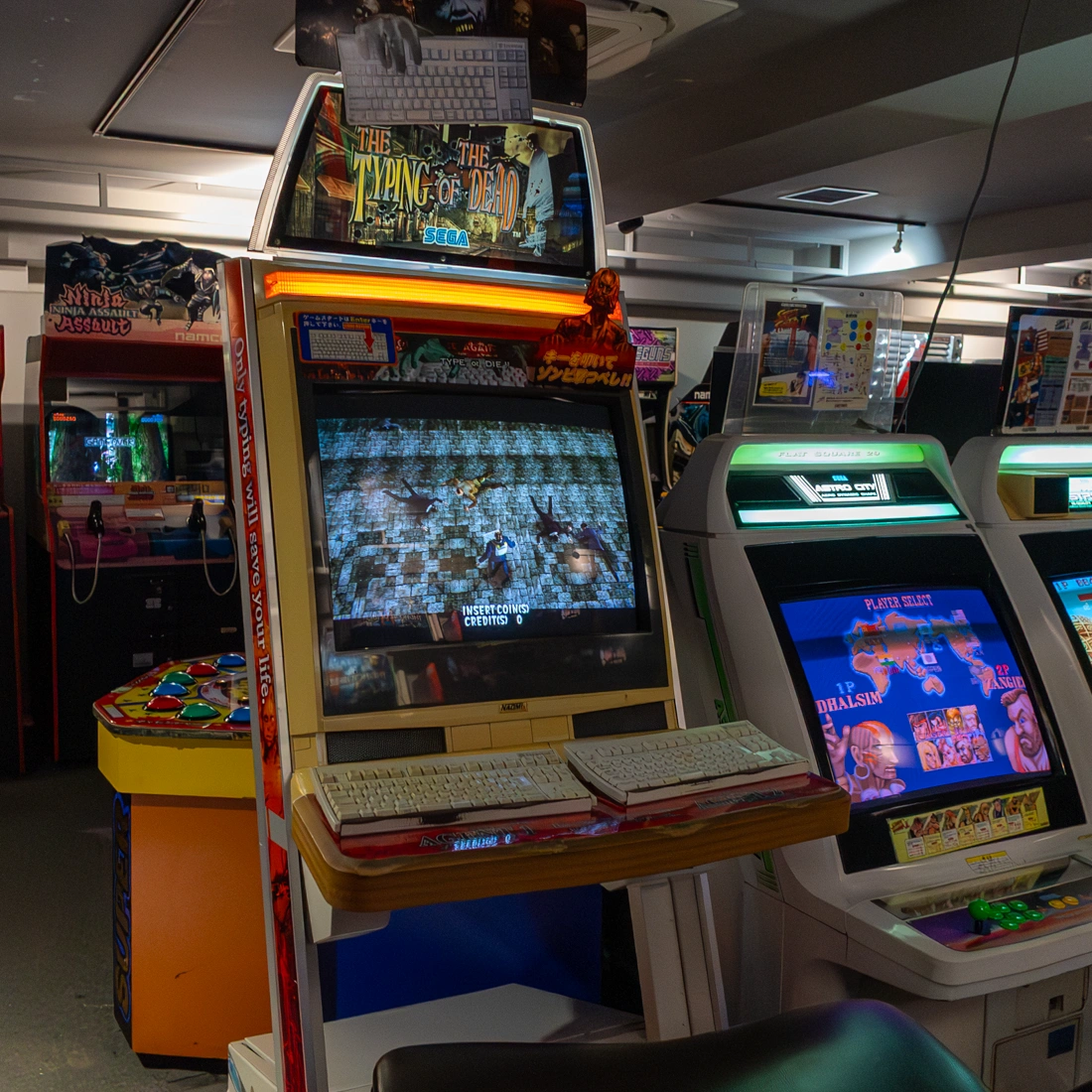 テーブル筐体がある、タイピングオブザデッドって初めてみた、ドリームキャストのキーボード。