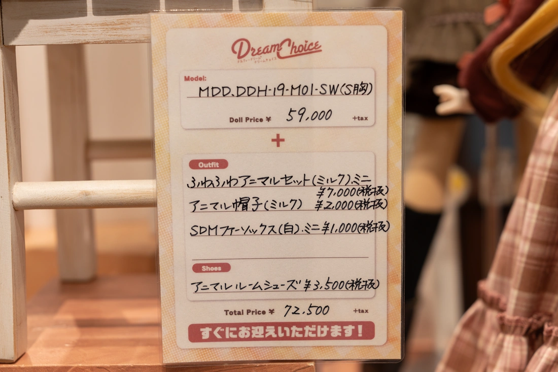 普段カウンター前しかほとんど見てなかったけど、今日はぐるっと一周見て回ったら、可愛い衣装やドールが沢山あった。